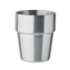Dobbeltvægsglas i genanvendt rustfrit stål (90 % genanvendt rustfrit stål og 10 % rustfrit stål) Kan stables. Kapacitet: 250 ml.