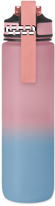 Sportsvandflaske i RPET med integreret sugerør, blødt silikonemundstykke, motiverende tidsmarkering, flip top-låg, der kan åbnes med én hånd, sikkerhedslås og bærestrop. Kapacitet 1L.