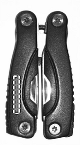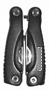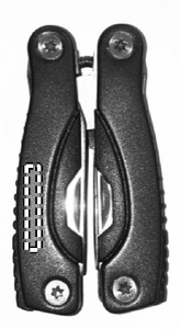 Sammenfoldeligt flerfunktions værktøj i rustfrit stål med tang i rustfrit stål. 9 værktøjsfunktioner. 600D polyester pose medfølger.