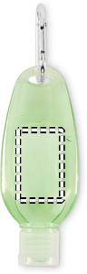 Aloe vera-gel i 50 ml genopfyldelig PET-flaske med PP-flipcap og aluminiumskarabinhage. Gennemsigtig grøn gel, ideel til rejsebrug.