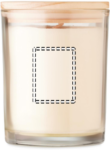 Vanilla fragranced wax candle in glass with bamboo lid in paper tube gift box. 8 cm diameter.240gr.