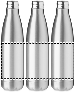 Dobbeltvægget flaske i rustfrit stål med isolerende vakuumegenskaber i kobber med låg og håndtag. Kapacitet 500 ml. Lækage fri.