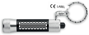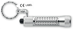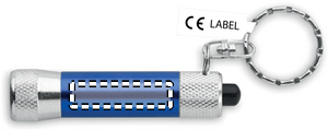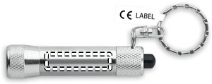 Mini aluminium lommelygte med 1 LED nøglering. 4 batterier LR44 inkluderet.