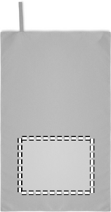 Mikrofiberhåndklæde af 90 % polyester og 10 % polyamid med elastisk håndtag. Let og hurtigtørrende.