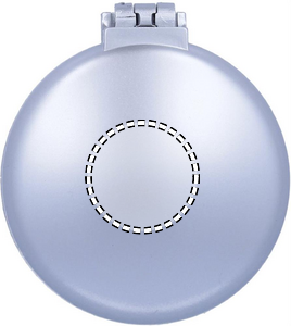 Sammenfoldelig hårbørste og spejl i plastetui. Silver spray finish.