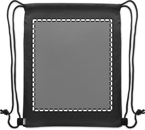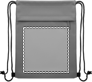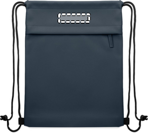 Taske med snøre og PU-belagt 600D RPET-polyester og 190T RPET-polyesterfor. Frontlomme med lynlås.