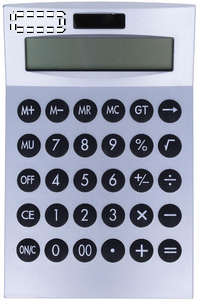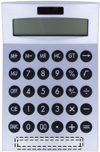 12-cifret solenergi lommeregner i plastik. 1 celle batteri medfølger.