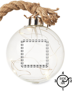 Glass bauble (Ø 8 cm) with string of 8 LED warm yellow lights and jute cord. 2 AA batteries excluded. Decorate your home with this glass ornament with LED lights. The jute rope gives it a natural look.