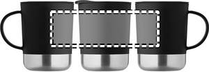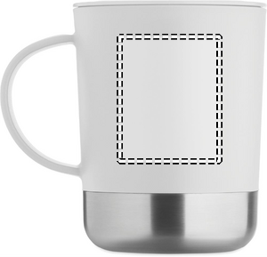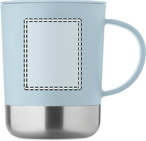 PP-krus med bund af genanvendt rustfrit stål (90 % genanvendt rustfrit stål og 10 % rustfrit stål) og skydelåg af PP. Kapacitet: 300 ml.