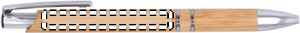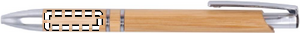 Push knap kuglepen med aluminium fitting og bambus krop. Blåt blæk.