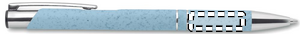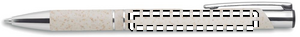 Tryk knap kuglepen i 50% hvede / halm og 50% ABS materiale med silver detaljer. Blå blæk.