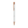 Trykknap-pen i genbrugsaluminium. Blåt blæk.