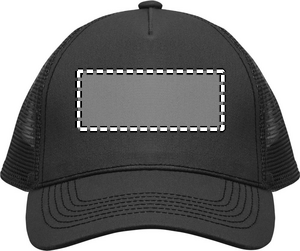 5-panels truckerkasket med frontpanel og visir i 250 gr/m² bomuld, net bagpå i polyester, velcrolukning.