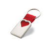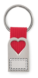 Metal nøglering i mat perlemor finish i hul hjerteform med polyesterbælte, der holder metalringen. Individuel gaveæske.