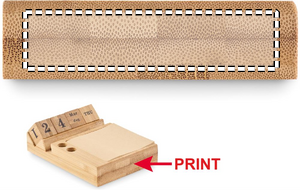 Skrivebordskalender i bambus med telefonholderfunktion, 2 penneholdere og 50 ark sticky notes. FSC®-certified | FSC 100%, N5.7, FSC-C213206.