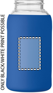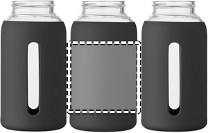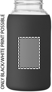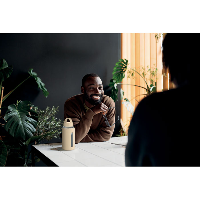 Flaske af højt borosilikatglas med silikonepose og PP-låg med håndtag. Kapacitet: 600 ml