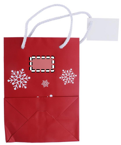 Elegant gift paper bag with snowflakes pattern. Gift tag included. Small size. FSC®-certified | FSC 100%, P5.3, FSC-C213206