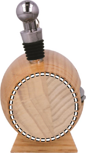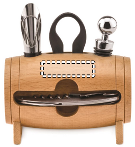 Træstander med 4 dele vintilbehør. Omfattende: tjenerkniv, vinprop, vinhælder og foliekniv.