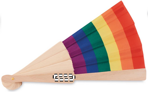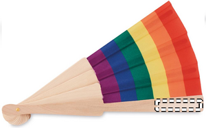 Manuel regnbuehåndventilator fremstillet af træ og polyesterstof. Denne muntre og farverige håndventilator vil holde dig kølig på de varme sommerdage. Træ er et naturprodukt, der kan forekomme små variationer i farve og størrelse pr. stk. hvilket kan påvirke det endelige dekorationsresultat.