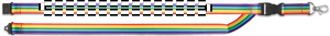 Regnbue RPET-lanyard med metalkrog, aftageligt spænde og sikkerhedsafbryder. En munter og farverig lanyard til at fastgøre nøgler, navneskilte, pas eller andet tilbehør til. Du vil helt sikkert blive bemærket med denne rundt om halsen.
