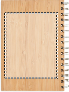 Notesbog med bambus omslag. Ringbundet med dobbelttråd, 140 linjerede kraftpapirssider (70 ark).