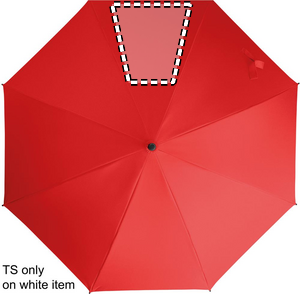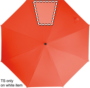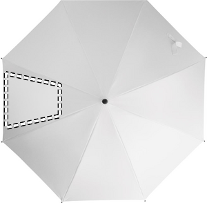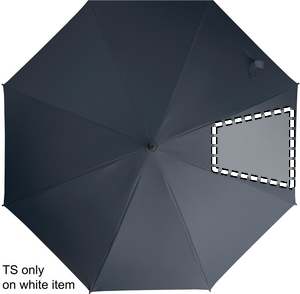 23 tommer lige, automatisk åben, vindtæt paraply med fuldt glasfiberstel og paneler i 190T pongee-stof. Plastspidser og -top. Buet håndtag i gummeret PP-plast. Manuel lukning.