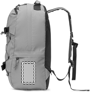 Rygsæk i højreflekterende 190T polyester med snor på forsiden. Polstret ryg, stropper og bund. Den har rum til 15 tommer bærbar computer. En sidelomme i net og anden sidelomme med lynlås.