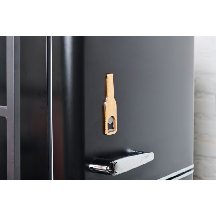 Magnetisk oplukker i rustfrit stål med bambusoverflade.