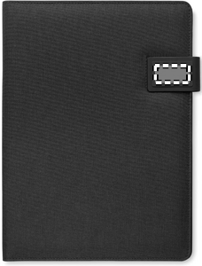 A4-konferencemappe med linned-PU-omslag. 5000 mAh powerbank og 15W magnetisk trådløs oplader. 20 linjerede ark notesblok. Flere indvendige rum. Magnetisk lukning. Elastisk penneholder.