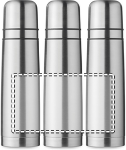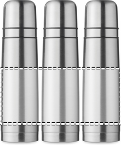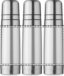 Dobbeltvægget genanvendt rustfrit stål (90 % genanvendt rustfrit og 10 % rustfrit stål) isoleret vakuumflaske med 2 integrerede kopper (indervæg PP) i låget. Kapacitet flaske: 750 ml, ydre kop: 150 ml, indvendig kop: 125 ml.