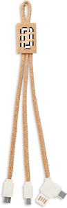 Kork 3-i-1 opladerkabel. Indgang type A og type C. Udgang 3 typer.