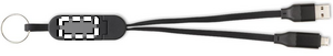 60W-kabel i genbrugs-ABS-kabinet med nøglering og telefonholder. Indgang: 2-i-1 Type-C og Type-A. Udgang: Type-C og micro-B (2 i 1 pin). Kabellængde: 26 cm.