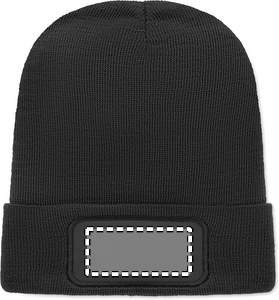 Unisex-strikket hue i blød, strækbar RPET-polyester med manchet og patch.