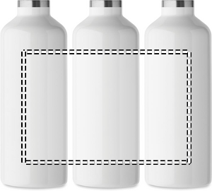 Dobbeltvægget vakuumisolerende flaske i genanvendt rustfrit stål (90 % genanvendt rustfrit stål og 10 % rustfrit stål) med låg med karabinhank. Kapacitet: 500 ml.