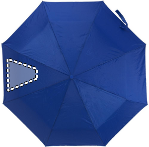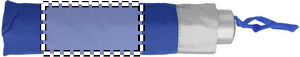 Paraply 21'' manuel åben i 190T polyester med zinkificeret metalplade og spids. Sort plating metalrib. Paneler i farve med sølvbelægning på bagsiden. Plast håndtag i farve med sølvbelægning og sort håndledsrem. 3 sektioner foldes. Inkluderer matchende pose med sølv trim. Manuel lukning.