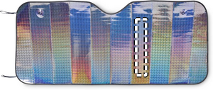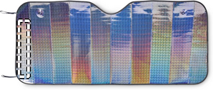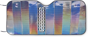 Foldbar solskærm til forruden. Indvendig skum 2 mm og indvendig PE-alumfolie.