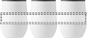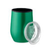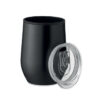 Dobbeltvægget kop i rustfrit stål med indvendigt PP og gennemsigtigt PS-låg. Kapacitet: 350 ml.