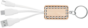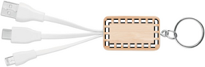 Bamboo cover key ring with charging cable with USB-A to Micro-B (2 in 1 pin) and Type C. As bamboo is a natural material, the colour per item can vary.