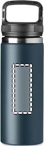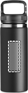 Dobbeltvægget vakuumisoleret flaske i rustfrit stål med krogophæng/build karabinhage på låget. Kapacitet : 500 ml.