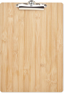 A4 bambusklippebord i bambus. Hold alt dit arbejde organiseret, og tab aldrig mere et vigtigt stykke papir med dette nyttige kontorelement. Bambusmaterialet giver det et naturligt udseende og gør det til et meget bedre alternativ end de almindelige plastikklamre. Bambus er et naturprodukt, der kan forekomme små variationer i farve og størrelse pr. stk. hvilket kan påvirke det endelige dekorationsresultat. FSC®-certified | FSC 100%, N5.7, FSC-C213206