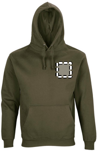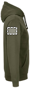 SOL'S CONDOR, Unisex sweatshirt med hætte, 80% bomuld - 20% genanvendt polyester Grs certificeret. Børstet fleece 280 med indsatte ærmer, 1X1 ribmanchetter, krave og forneden. Kængurulomme, foret hætte med tone-i-tone løbegang og metaløjer. Om matchende størrelser henvises til størrelsestabellen i afsnittet om produktdokumentation.