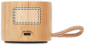 5.1 trådløs højttaler i ABS med bambus detaljer, bomuld på toppen og ophængningssløjfe. Den har en LED-lysindikator. 1 genopladeligt Li-POL 300 mAh-batteri medfølger. Inkluderer en SD-kortport og et AUX/USB-kabel. Udgang: 3W, 3 Ohm og 5V. Afspilningstid ca. 3 timer.