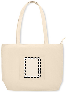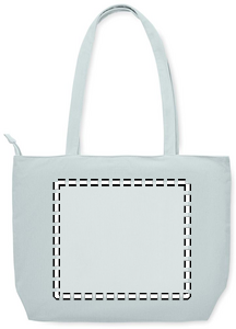 Stor shopping-/strandtaske i polyesterfløjl med lynlåslukning i toppen, åben frontlomme og inderlomme. 220 gr/m².
