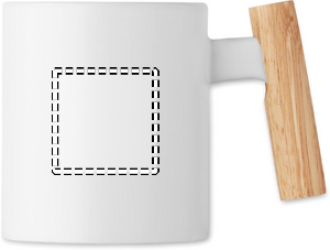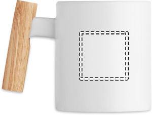 Keramisk krus med træhåndtag. Kapacitet: 320ml. Individuel pakket i hvid kartonkasse.