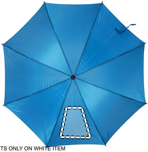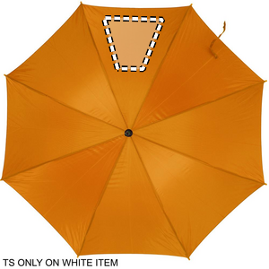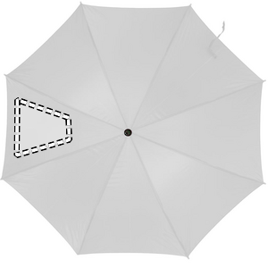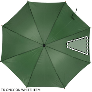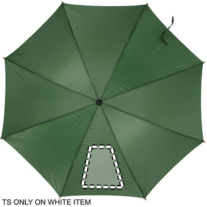 Paraply 23'' auto åben i 190T polyester med træskaft, tip og top. Forgyldte metalkanter. Buet naturligt træhåndtag. Automatisk lukning.