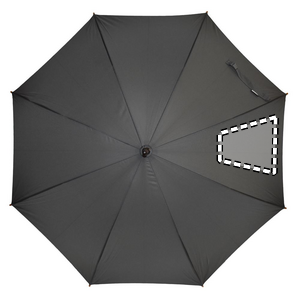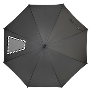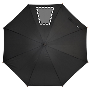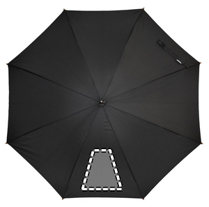 Paraply 23'' auto åben i 190T RPET pongee med træskaft, tip og top. Forgyldt metalkant. Buet håndtag i naturligt træ. Manuel lukning.