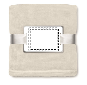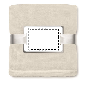 280 gr / m2 flannel fleece tæppe indpakket i bånd og med trykbart kort.