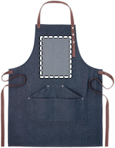 Adjustable kitchen apron with 3 front pockets in 240 gr/m² denim with cotton straps. Presented in individual box.