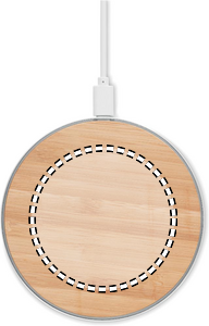 Trådløs hurtigoplader i bambus og aluminium. Blåt lys lyser under opladning. Output: DC9V/1.1A (10W). Bambus er et naturligt produkt, der kan være små variationer i farve og størrelse pr. Vare, hvilket kan påvirke det endelige udsmykningsresultat.