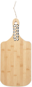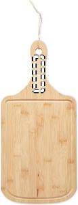 Serveringsbræt i bambus med rille og jutetov i naturlig form. Servér oste, snacks, tapas eller andre fødevarer med dette serveringsbræt i naturligt udseende. Det har et håndtag til nem transport og et jutetov til at hænge det op i, når det ikke er i brug. Bambus er et naturprodukt, der kan forekomme små variationer i farve og størrelse pr. stk. hvilket kan påvirke det endelige dekorationsresultat. Størrelse 46,5x21,5x1 cm.